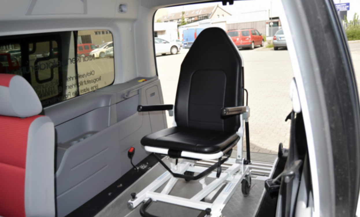 Komfortable Beförderung mit modernen Rollstuhl-Systemen. Sicherer Halt, sanftes Einladen, ruhige Fahrt – für ein entspanntes Ankommen.